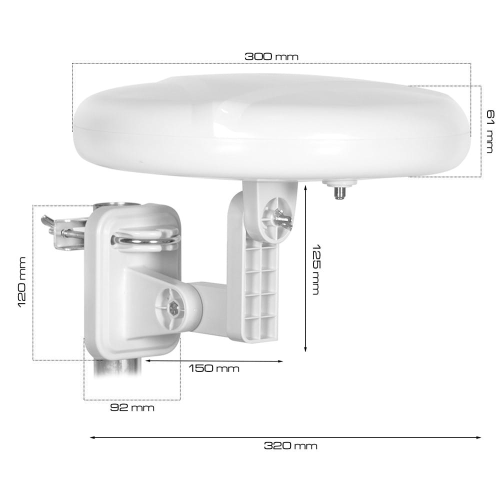 Dzięki dołączonemu do zestawu uchwytowi możesz przewiercić antenę bezpośrednio do elewacji swojego budynku. Dzięki dołączonemu do zestawu cybantowi możesz przykręcić antenę bezpośrednio do masztu antenowego lub barierki balkonowej