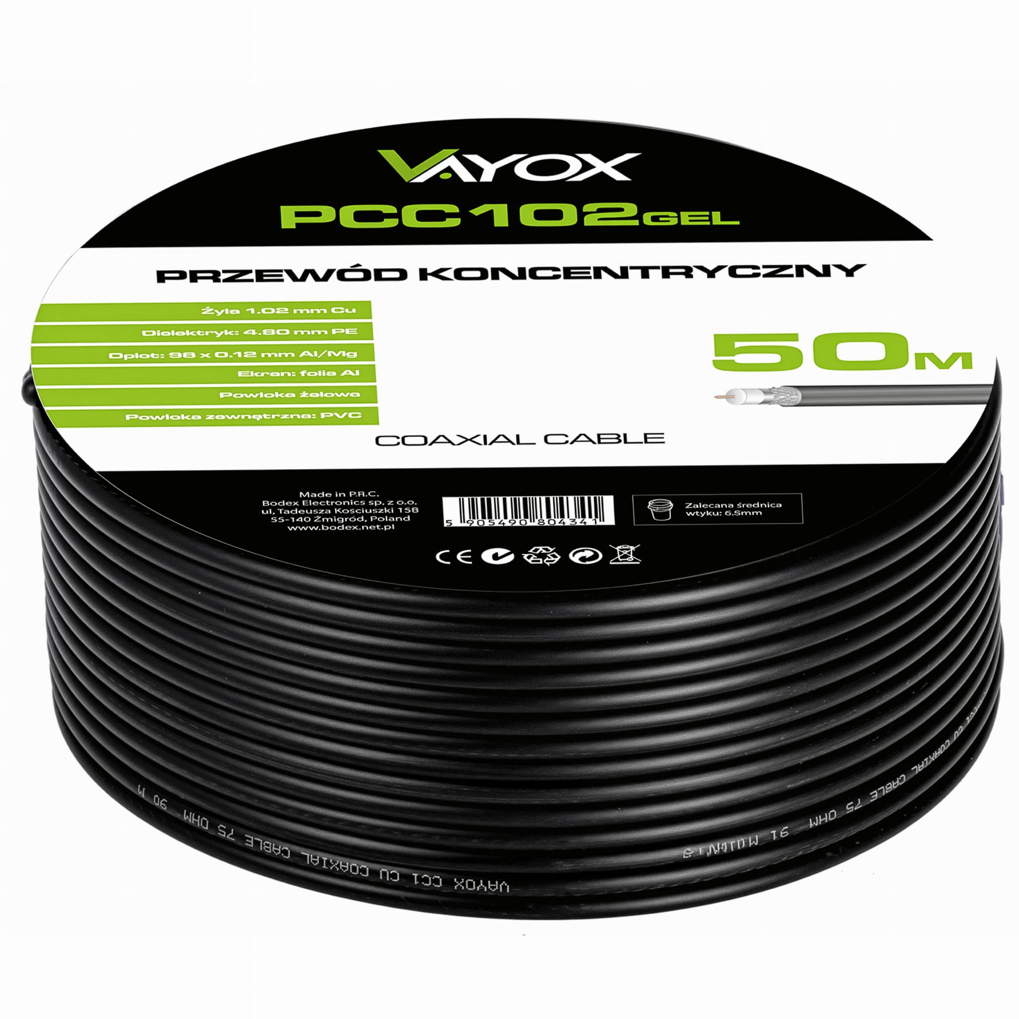 Kabel koncentryczny żelowany RG6U PCC102GEL-50 50m Vayox