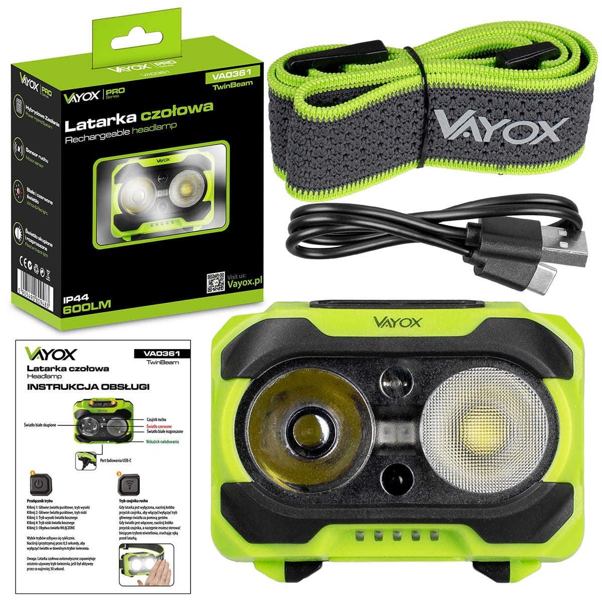 Latarka czołowa 600lm IP44 TwinBeam Pro Series VA0361 Vayox