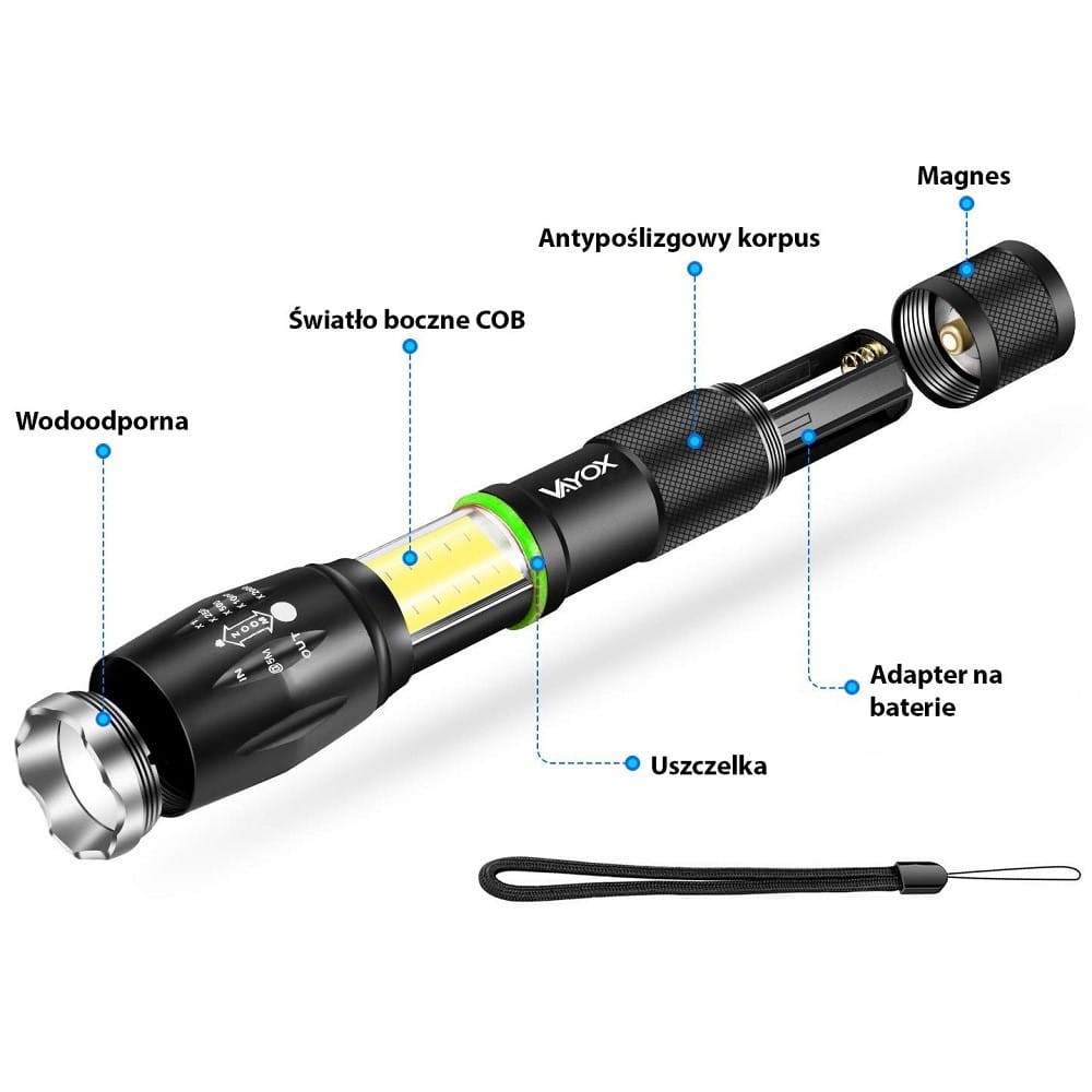 Latarka taktyczna ze światłem bocznym VA0019 VAYOX