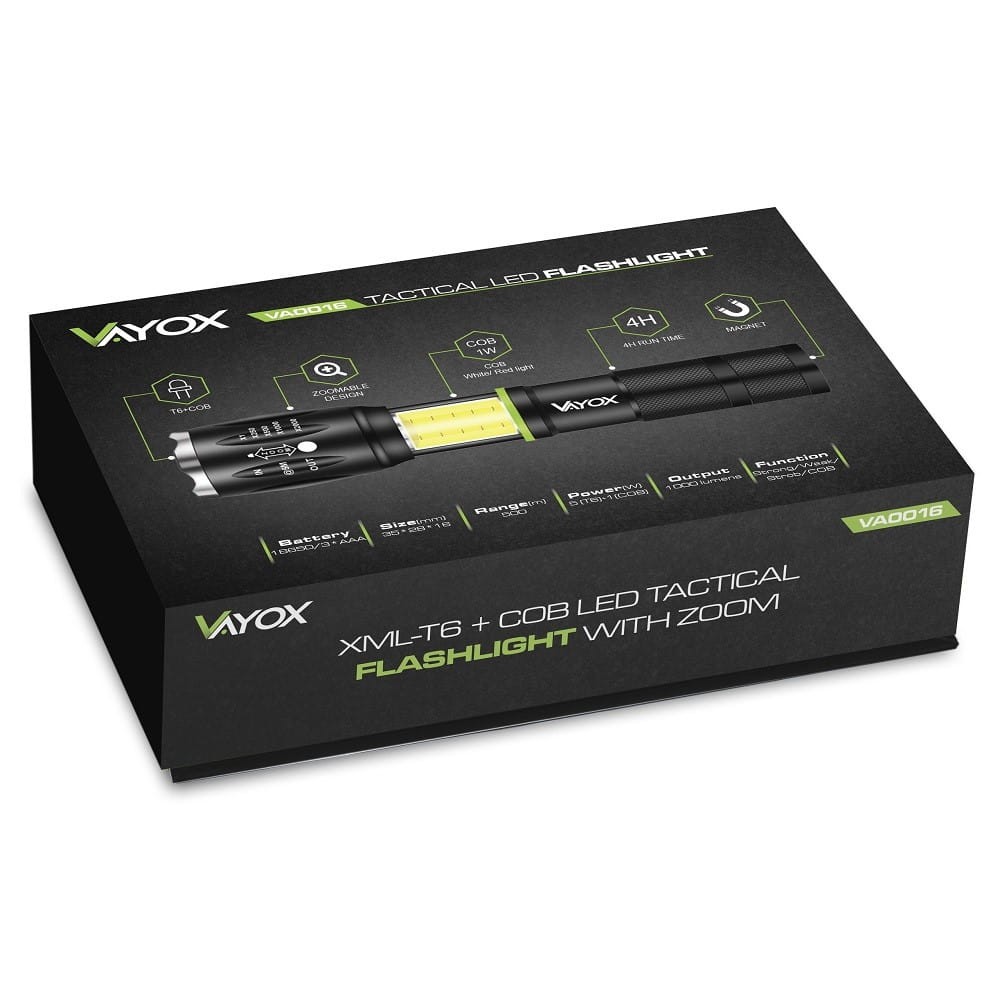 Latarka ręczna Vayox VA0019 to specjalistyczna latarka, stworzona dla aktywnych fizyczne osób, które potrzebują silnego i prostego w użyciu źródła światła o dużej trwałości. Idealnie nada się dla sportowców, eksploratorów, turystów, myśliwych, poszukiwaczy oraz do codziennego użytkowania np. w gospodarstwie domowym.