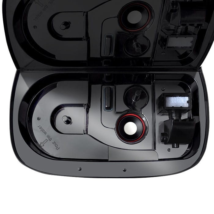 Zbiornik o pojemności 5l i wysoka wydajność rzędu 300ml/h gwarantują skuteczne nawilżenie pomieszczeń o powierzchni do 40 m2 oraz długie działanie bez potrzeby częstego uzupełniania wody. W momencie jej wyczerpywania się urządzenie poinformuje o tym za pomocą sygnału dźwiękowego oraz podświetlenia ekranu. Filtr z żywicą jonowymienną zadba o odpowiednie oczyszczenie wody przed wygenerowaniem pary, usuwając z niej jony magnezu i wapnia.