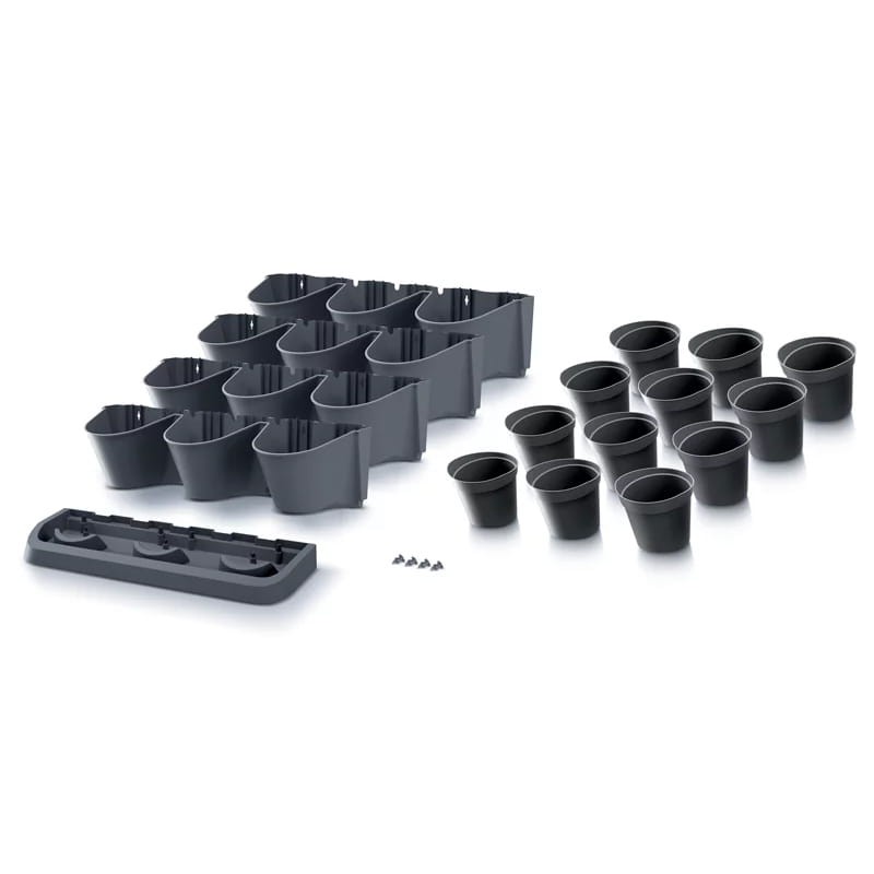 Rozmiar doniczki modułowej idealnie pasuje do pojemników w których najczęściej są sprzedawane sadzonki świeżych ziół (doniczka kwadratowa/okrągła 12cm)