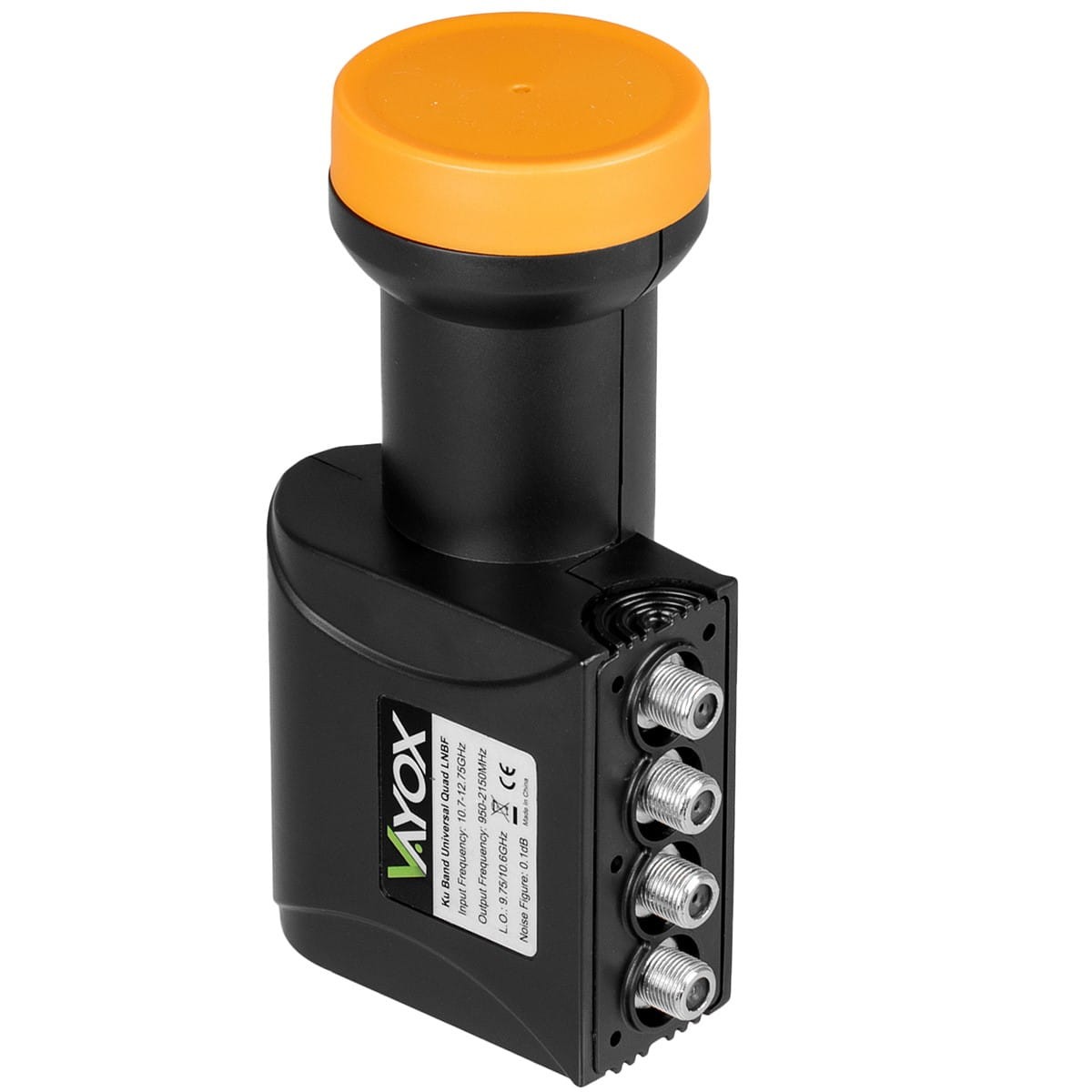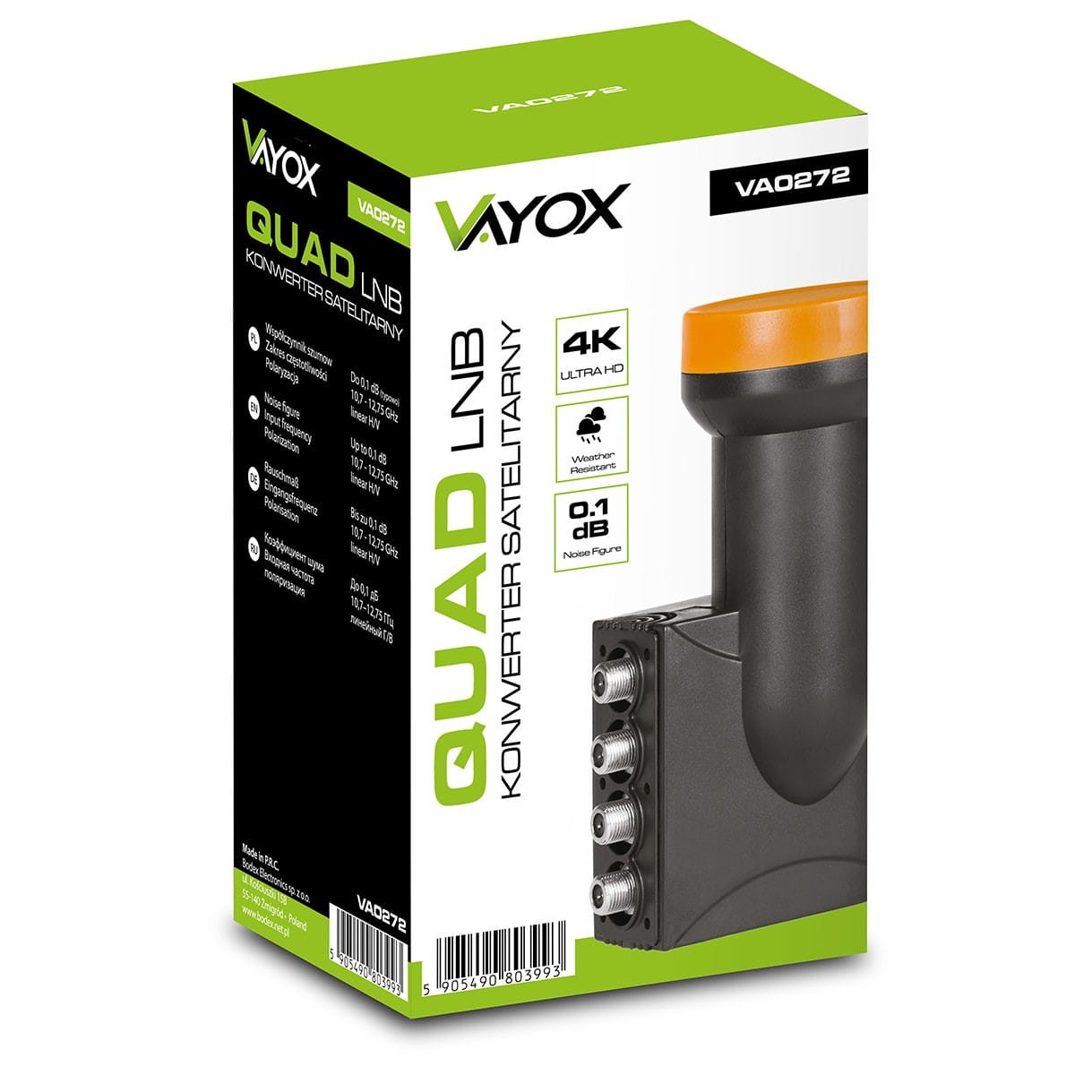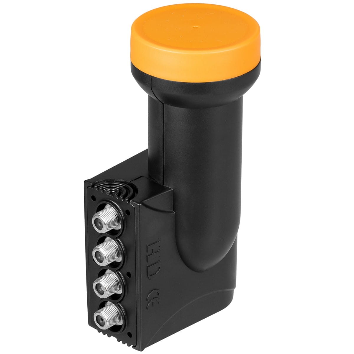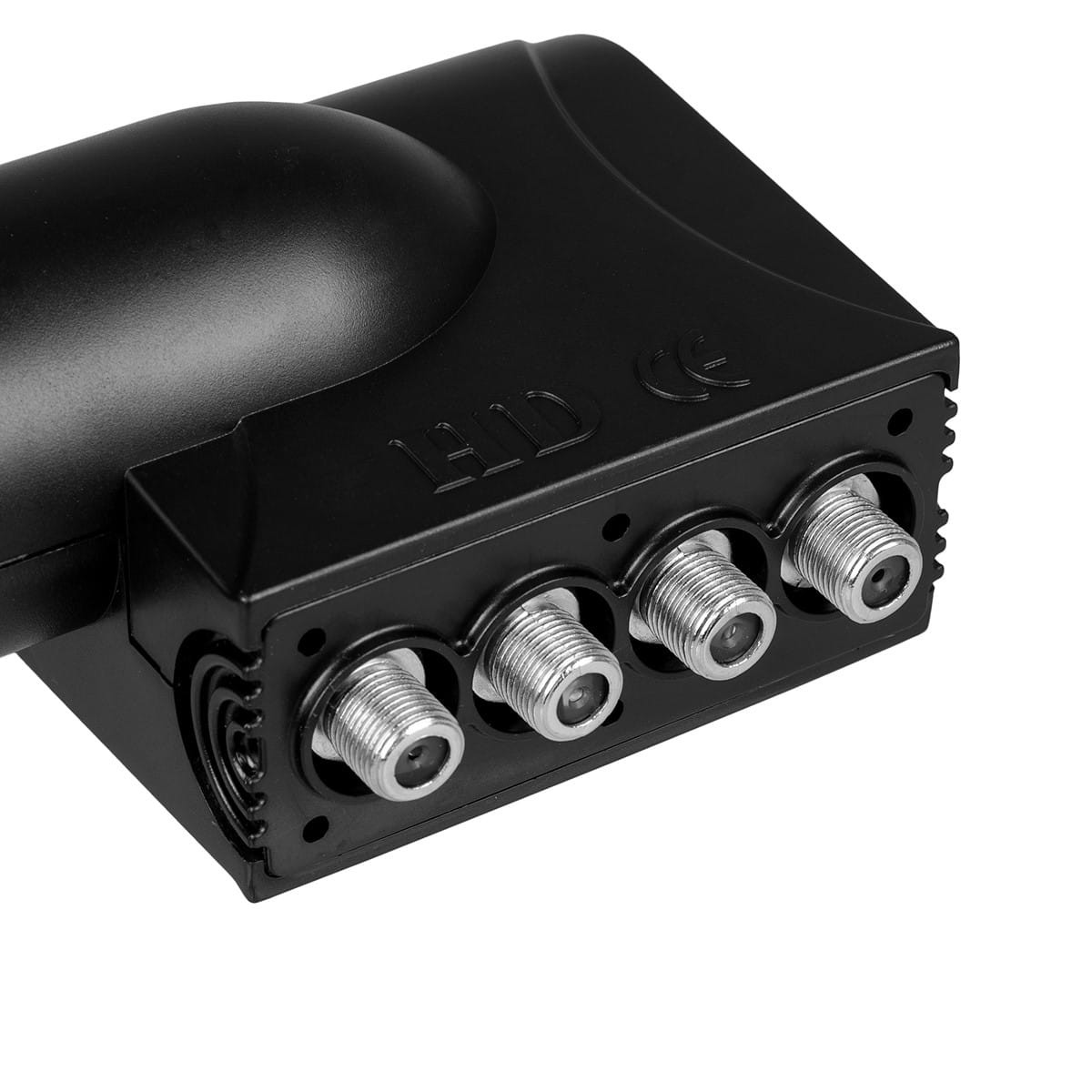 Cztery konwertery single w jednej obudowie. Działa niezależnie z czterema odbiornikami satelitarnymi lub dwoma z nagrywarką. Konwerter Quad umożliwia jednoczesne nagrywanie i oglądanie różnych kanałów z różnych pasm i polaryzacji (V i H). Konwerter posiada sprawdzony system ochronny, który pozwala uniknąć uszkodzeń na złączach przez zbierającą się tam wodę. Pozwala to znacznie wydłużyć bezawaryjny czas eksploatacji urządzenia. Zminimalizowany współczynnik szumów umożliwia osiągnięcie optymalnego odbioru sygnału, nawet w ekstremalnych warunkach. Gwarantuje to płynny obraz, wolny od jakichkolwiek zakłóceń nawet w trudnych warunkach atmosferycznych. Najwyższej jakości materiały oraz duża precyzja wykonania, gwarantują długą, bezawaryjną pracę urządzenia oraz satysfakcję użytkownika. Obudowa i zastosowane technologie są odporne na działanie czynników atmosferycznych