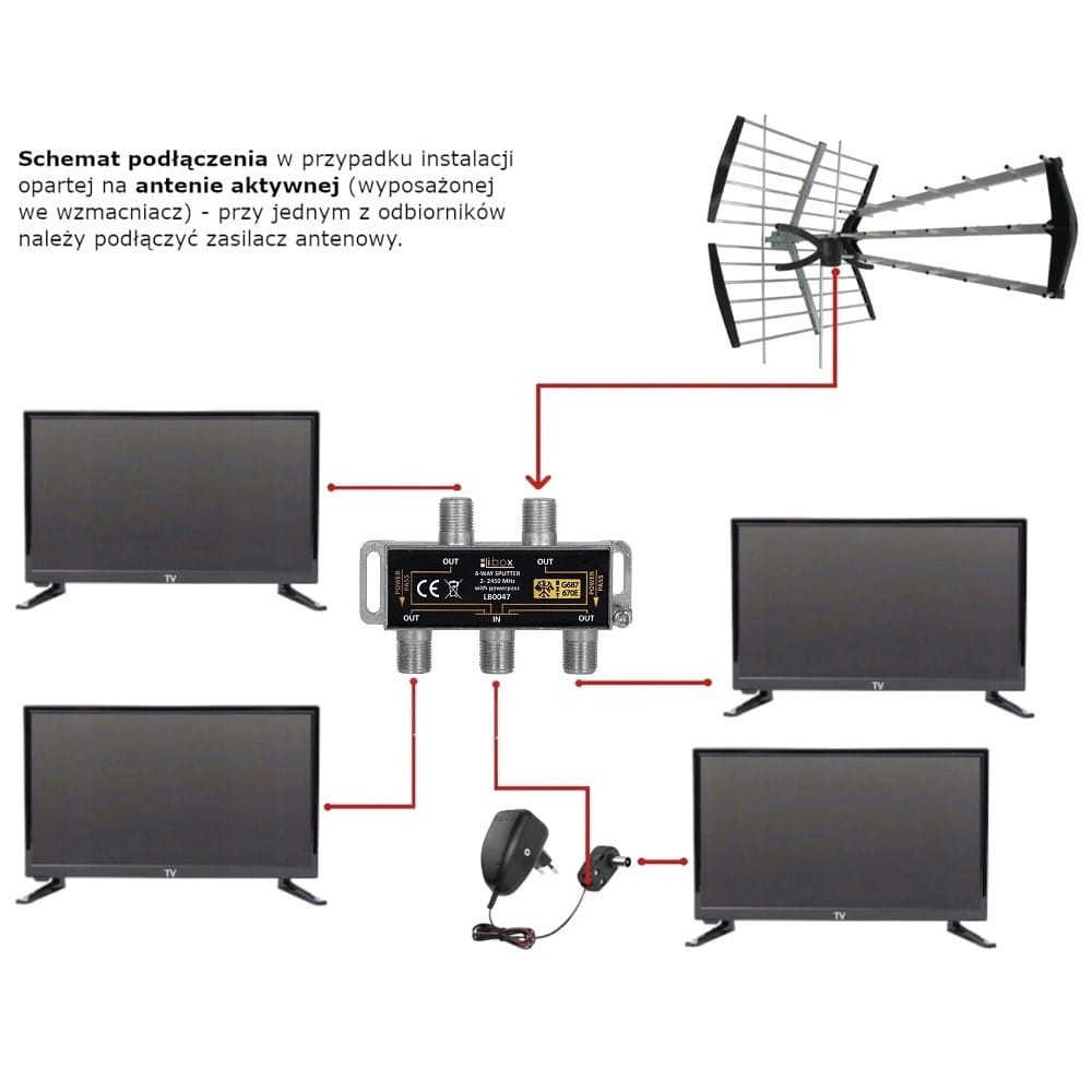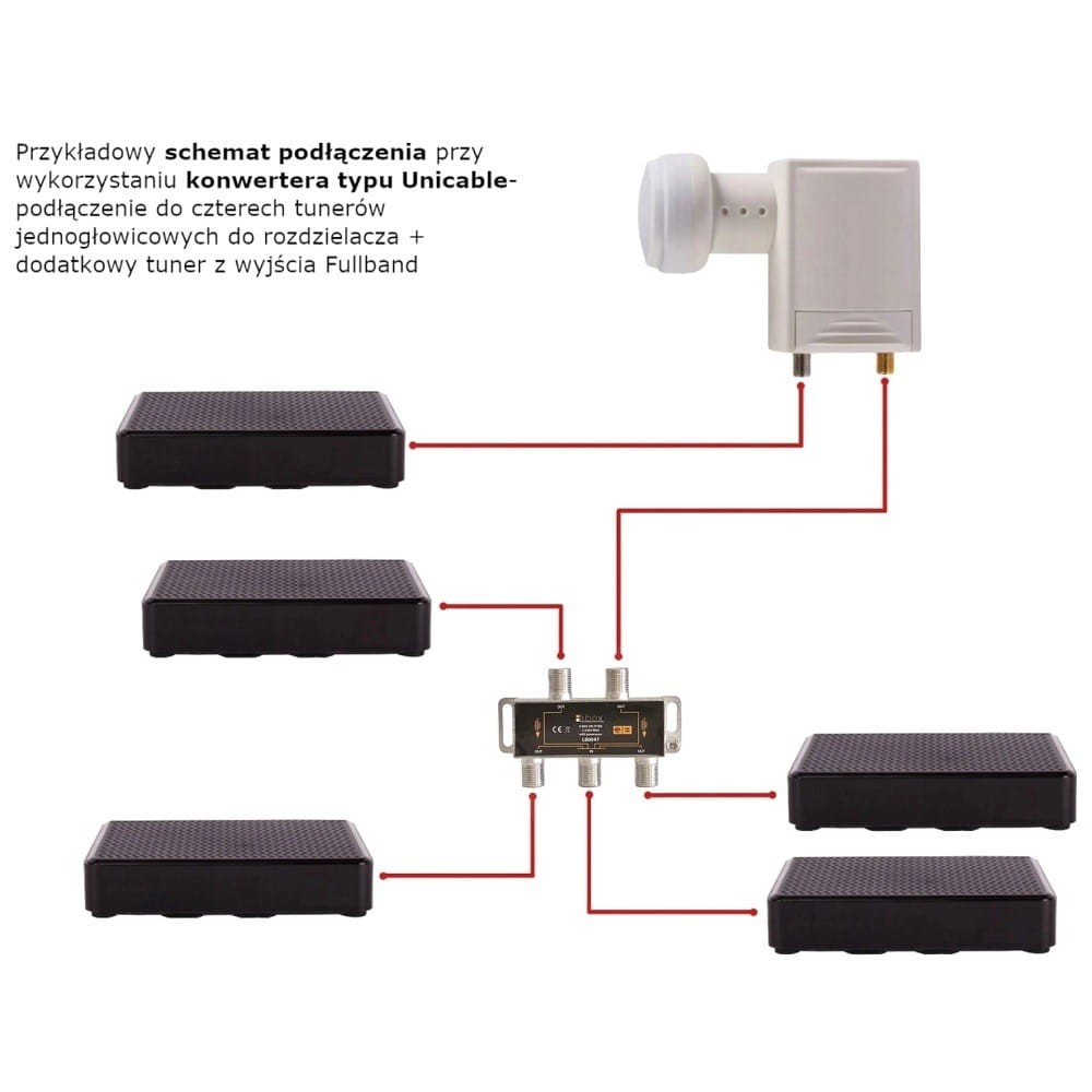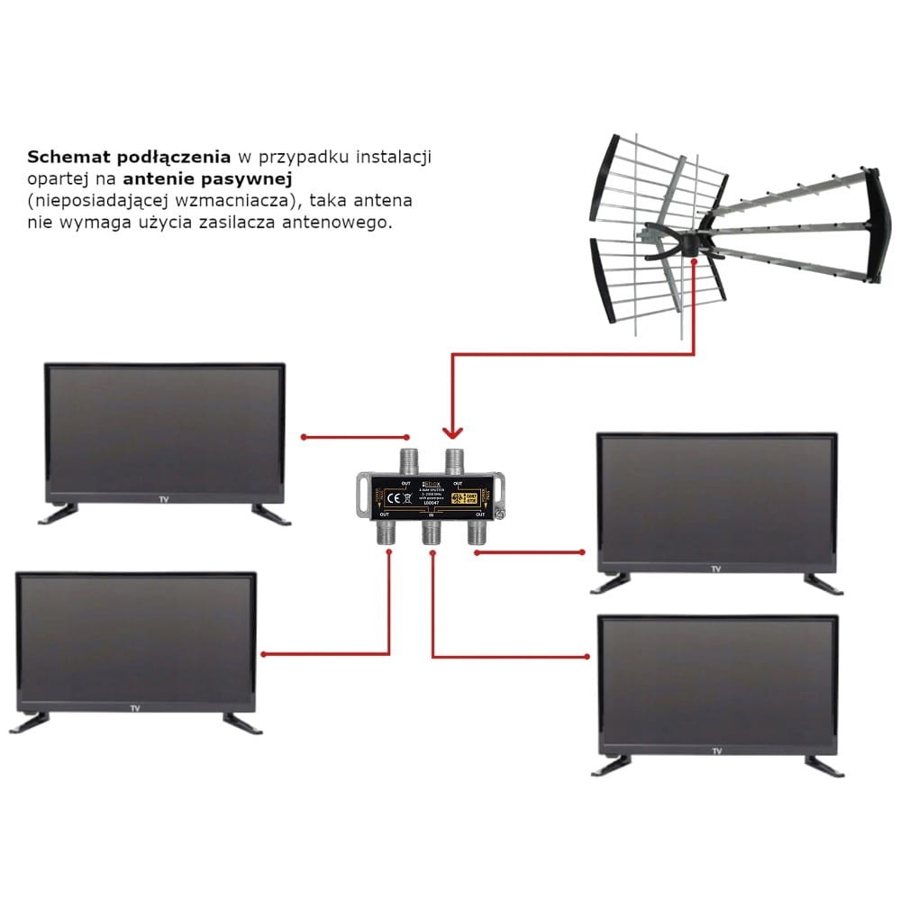- Umożliwia podłączenie do 4 odbiorników do jednej anteny