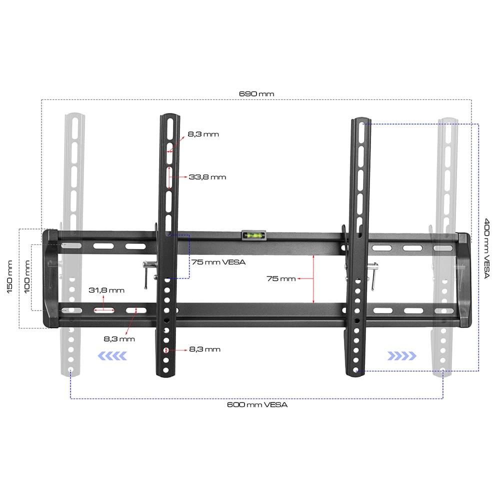 • Regulacja nachylenia TV pod kątem od 0° do 15°