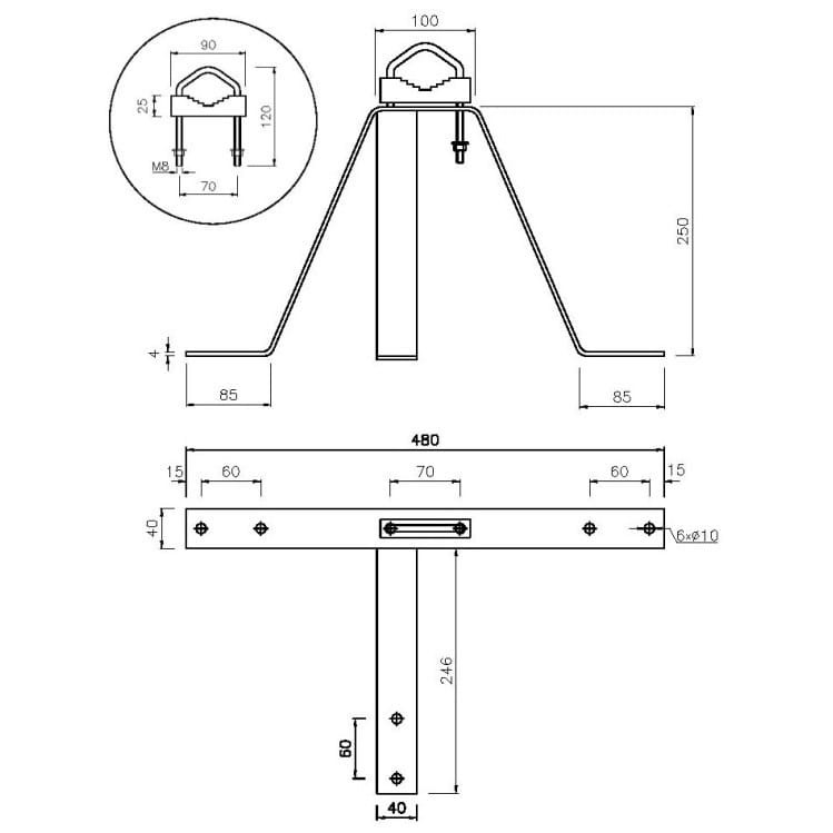 Uchwyt masztu U 250 (komplet) 25 cm